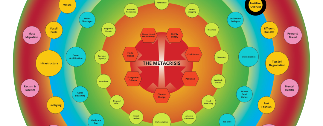 Civil Unrest, Climate Change, Ecosystem Collapse, Finite Planet, PollutionPresentation : Fertiliser Overuse + Warming Oceans LayersCrops need three key nutrients to grow…… Read more October 23, 2024 https://themetacrisis.info/wp-content/uploads/2024/10/Slide-01-Large.png 1080 1080 admin https://themetacrisis.info/wp-content/uploads/2024/10/Centre-no-text-212x300.png admin2024-10-23 14:50:322024-10-23 17:24:50Presentation : Fertiliser Overuse + Warming Oceans Layers